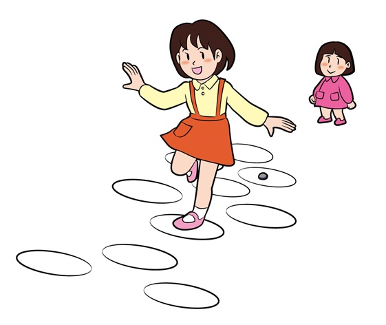 英語圏では「ホップスコッチ(Hopscotch)」と呼ばれており、遊び方は日本の石蹴りと基本的には同じですが、各地で独自のルールが追加されたりしているそうです。