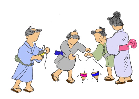 江戸時代(1603年~1868年)にコマは庶民の間で広まり、コマを手のひらや扇の上で回したり、綱渡りをさせるなどの遊び方が生まれました。