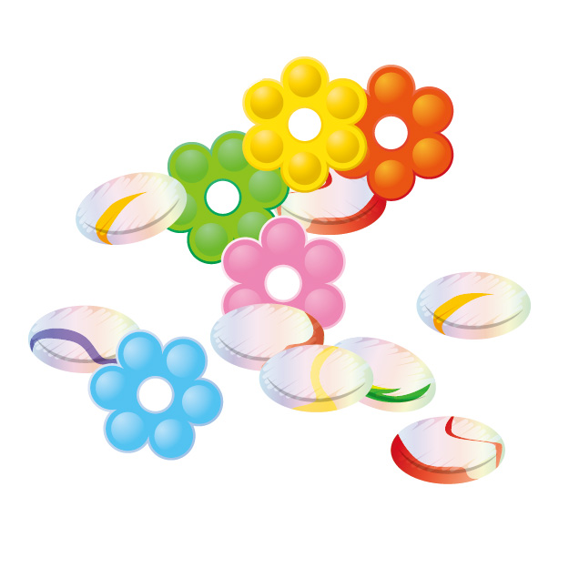 戦後になるとプラスチック製のおはじきが登場し、平たい円形だけでなく月や花の形をしたものなどが作られるようになりました。
