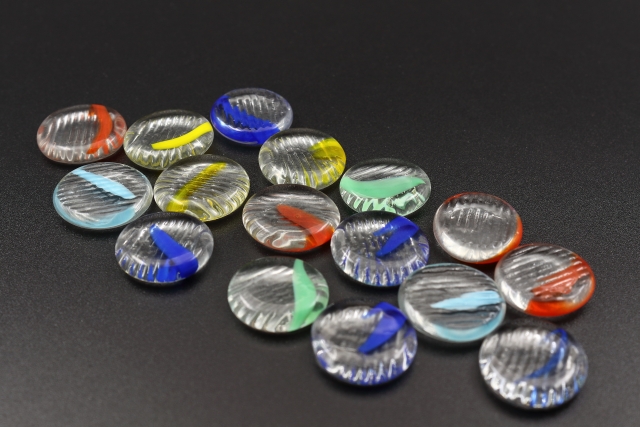 おはじきはガラス製が一般的ですが、木製や陶器製、プラスチック製などもあります。