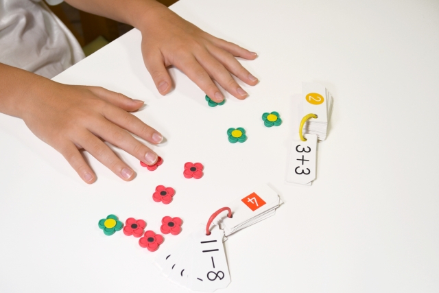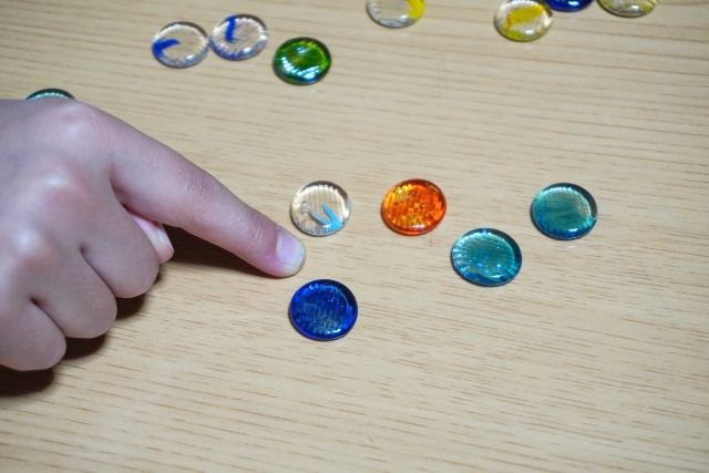 算数の授業で教材として使われるおはじきは、数の数え方を学んだり、足し算や引き算などを学び、算数の基礎を身につけます。